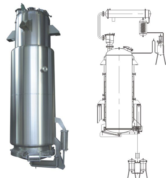 The equipment is applicable for the multiple technology operation of normal pressure, micro pressure, water frying, warm soaking, thermal reflux, compulsory circulation, filtration, redolent oil extraction and organically solvent recycling in traditional Chinese medicine, food and chemical industry. The prominent characteristics of the large and small taper type extracting tank is that the slagging is very convenient with good heating effect.The tank body is equipped with CIP cleaning automatic rotary spraying ball head, temperature measuring hole, explosion-proof view lamp, view mirror, rapid open feeding inlet etc., which can guarantee the convenient operation and is in accordance with GMP standard.  The tank body inside the equipment is made of imported SUS304, and the jacket is made of completely sealed aluminum silicate blanket for temperature holding. The external tank body is stuck with SUS304 semi-luster thin steel sheet for surface decoration. The complete equipment supplied shall include: Defoamer, condenser, cooler, oil and water separator, filter and control desk for cylinder etc. Accessories.